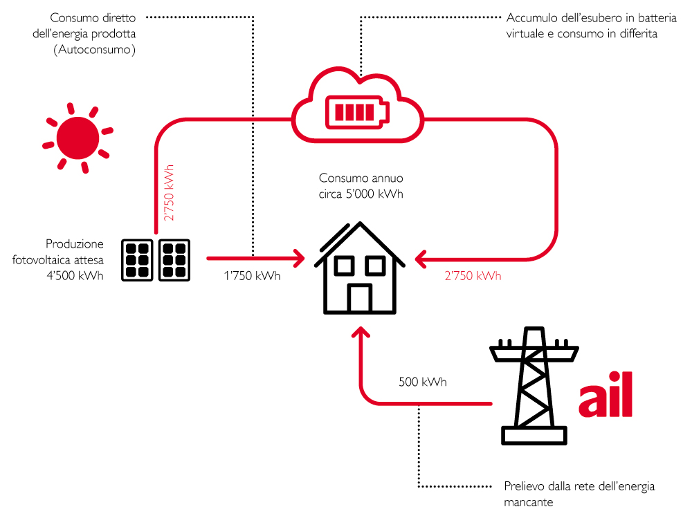 L'accumulo è virtuale: noi recuperiamo l'energia prodotta in eccesso dal tuo sistema fotovoltaico, la conteggiamo e te la restituiamo di nuovo. Così facendo non servono batterie ingombranti, scomode e costose.